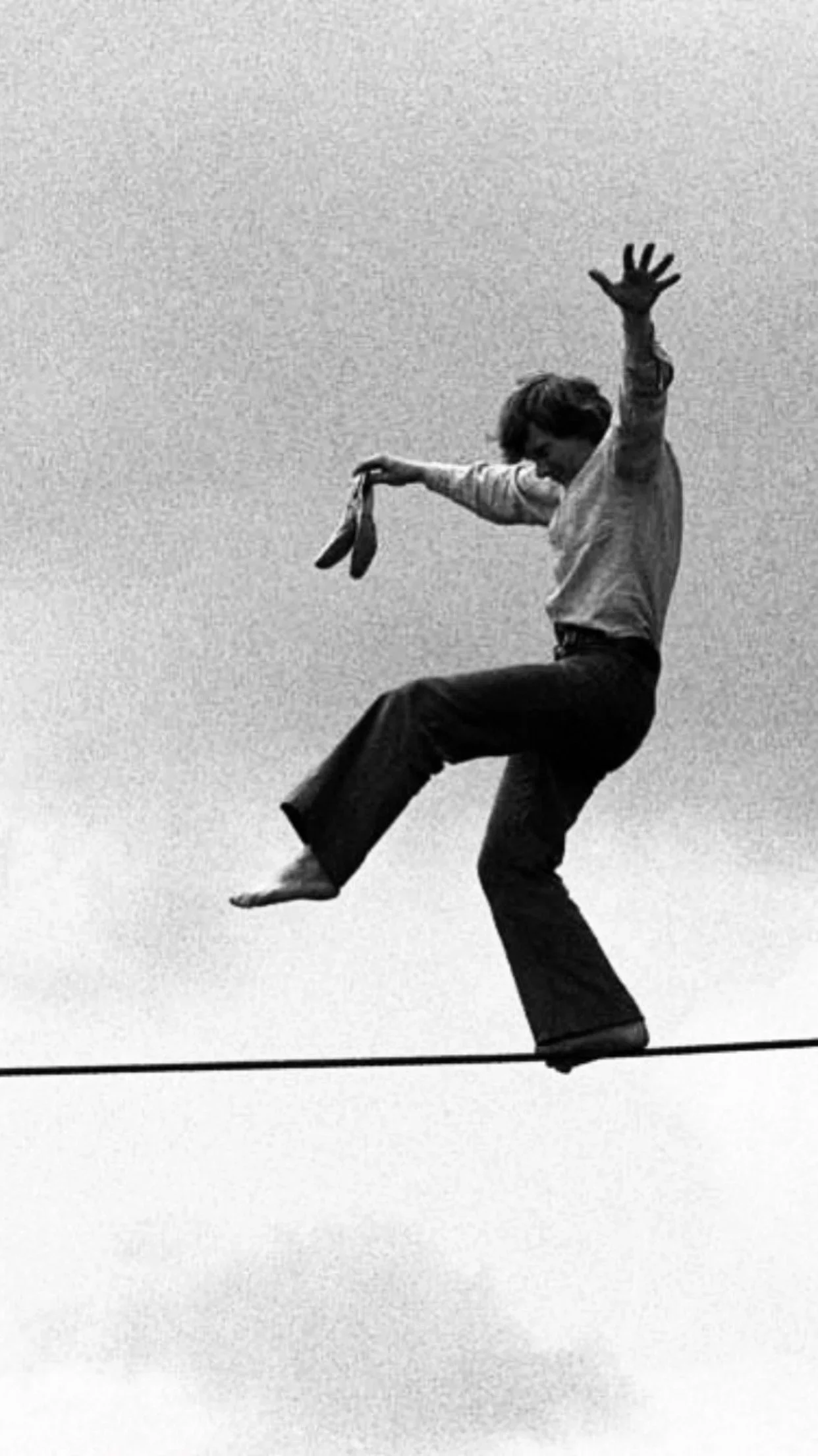 I’ve always had a fascination for Philippe Petit, a tightrope walker. When I graduated high school I discovered a documentary about him. I read a book about him. In college, a few years later, I gave a speech about him. I’ve watched additional programs about him. (I have proved my interest, yes?) His gentle assuredness that he was meant to walk betwixt (GOTTA) ridiculously tall things, and his unbothered attitude towards anything else, sort of struck something very honest within me. Is that spirit? I bring him up because he popped up on one of the accounts I follow last night—some quotes: “I found out that total creativity involves a certain intellectual rebellion…not to become a criminal, but…you have to do things that are a little bit forbidden. You have to feel free.” … “Anyone that embarks into the arts…even….the art of living as an extension, will have the most difficult life because it’s opposite of lethargy and laziness and dragging your feet and dying as you live.... If you find the motor necessary for a great life, which is passion, you will have a difficult life and at the same time your life will be very easy in a sense that you will not have to struggle to find ways, it is in you, it devours you, you have to do it… using your intuition and your passion.” And then I have added this photo as my lock screen background: